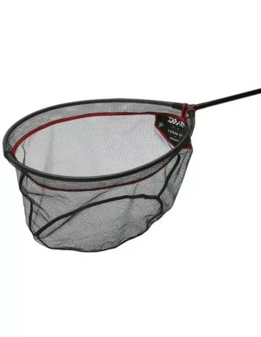 Having fished commercial fisheries for over 15 years, one of the most annoying things about fishing hair rigs with quick stop, pellet bands or bayonet connectors is they have an uncanny habit of getting caught up in the mesh of the landing net and ripped off the hair, whilst the fish is thrashing around, no matter how well you tie them on. obviously what was needed was a net specifically designed to eliminate this issue, whilst not effecting the functionality or all round performance of the landing net itself. Taking these design problems on board, DAIWA SPORTS released the TEAM DIAWA PELLET LANDING NET that has is ideally suited for pellet waggler and all feeder presentations when the previously mentioned attachments are being used. Over the past few weeks the UKMA team have had a proper look at this well thought out landing net and here’s what it has to offer you as an angler.