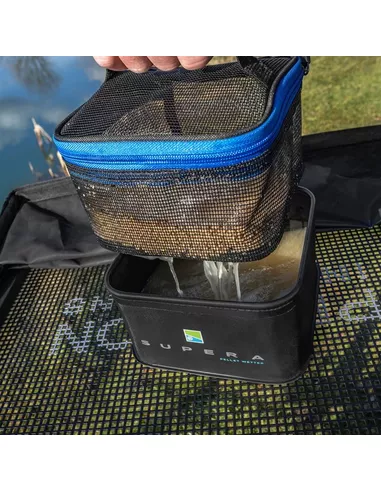 is ideaal voor het weken van pellets. Het tasje van de Pellet Wetter is gemaakt van mesh en voorzien van een rits en handvat, het bakje is gemaakt van EVA met een stijve rand om de vorm te behouden.